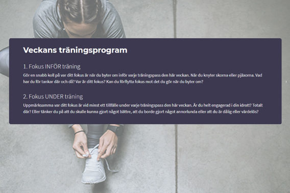 Här kan du se exempel på några av de mer interaktiva metoderna och inslagen i Pratamera Sports mentala träningsprogram. Ju mer noggrann du är med dina analyser, skattningar och övningar, desto mer kommer du få ut av programmet!